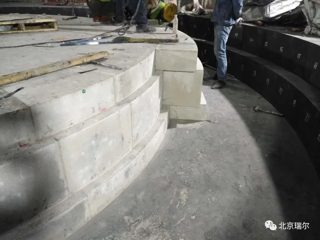 山西晉城福盛鋼鐵公司4#高爐容積1280m3,于2020年03月22日開始施工瑞爾陶瓷杯墊磚,至04月12日風(fēng)口組合磚施工完成, 歷時22天,施工過程順利。